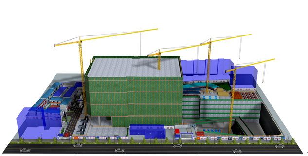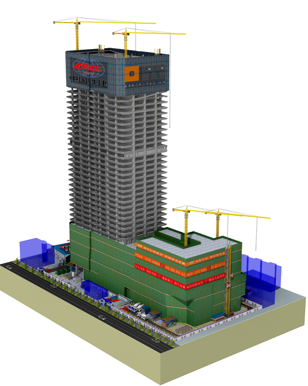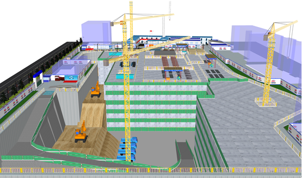 通过进行了项目整体三维施工模拟、现场标准化管理、策划落地、大型机械选型及布置、三维动画视屏展示等。