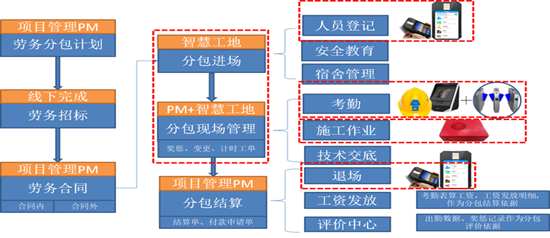 劳务管理整个流程以项目管理系统为主线,利用智慧工地劳务管理系统数据作为劳务分包结算、劳务分包评价等依据。通过智慧工地现场劳务管理系统,可对现场劳务人员从登记、安全教育、宿舍分配、出勤、施工作业、技术交底、工人退场、工资发放、用工评价做全面的管理,用智慧工地劳务系统来补充项目管理系统中劳务分包现场管理的问题,从而实现劳务的全业务处理。