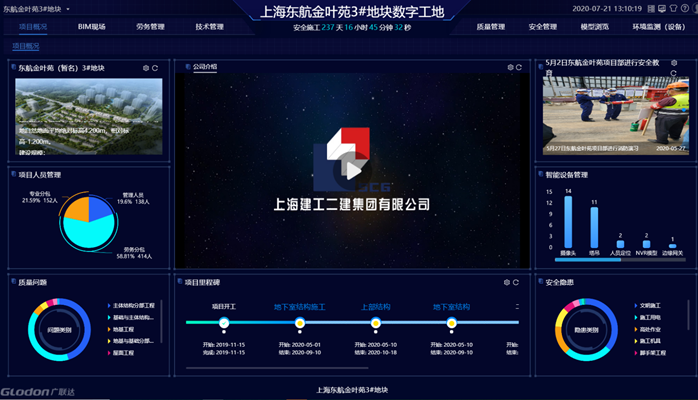 BIM5D+智慧工地决策系统提供数据可视化看板、整体呈现工地各要素的状态和关键数据,对劳务、进度、质量、安全相关数据进行多维度的分析;满足日常业务管理的同时,支持外部检查、行管部门巡检、业主单位飞检及集团公司的检查的应用场景;通过此模块对项目进度、人员、质量安全、智能设备有个整体的了解。