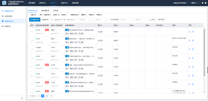 质量安全管理系统可以清晰的看到项目上所发生的全部质量安全问题,通过问题的数量统计,方便管理人员对项目的质量安全情况做整体把控,可以帮助管理者及时、全面的掌控项目的整体情况,问题可追溯,协助管理层解决问题。同时系统上将所有的质量安全问题按照不同的维度去进行分析统计,例如按照责任人、按照分包单位、按照隐患类型,将分析的结果以图表的形式呈现,更加便于查看。