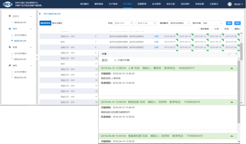 精确把握构件入库时间,并对构件进行管控点检查,实现对于预制柱跟踪管理的闭环