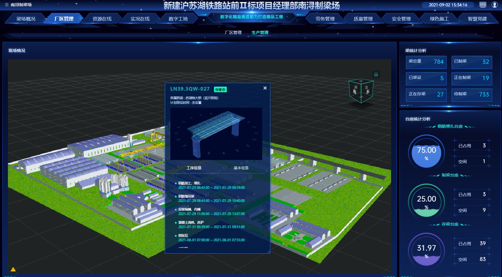 制梁场场地近靠湖浔大道,地理位置优越,交通优势明显,制梁场临线路布置,纵向平行于线路中心线,规划设计占地面积223亩。主要负责沪苏湖铁路苏湖特大桥784孔箱梁的预制及架设施工(其中40m简支箱梁441孔、32m简支箱梁319孔、24m简支箱梁22孔、20m简支箱梁2孔)。