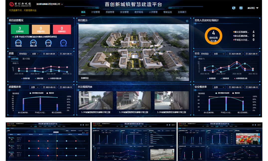首创新城镇在顺义、房山、平谷三区投资建设多个集租房项目,并以智慧工地管理平台为工程建设数字化中心建设规模达建筑面积近80万平米集租房项目。