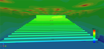 以 OpenFOAM 为计算核心,风环境模拟可以使用云计算对室外风环境、室内自然通风、室内空调送风、室外机进行模拟分析,快速选择夏季、冬季和过渡季工况,设置计算域大小、网格划分方案,室外风环境可批量布置树木,室内空调送风支持定义辐射面,快速布置风管、风口(常规风口、散流器、旋流风口、布袋风口)和构件,室外机模拟可批量布置室外机及遮挡;结果展示可查看任意切面计算结果,输出温度、风速、风压、风速矢量、风速放大系数、建筑迎风面、背风面风压、空气龄云图、流线图,统计外窗风压、窗地比、换气次数,计算室外机进风温度、返混率,自动输出模拟分析报告,从而给出最优的风口布置方案。