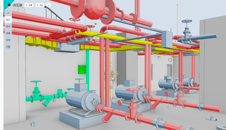 重点部位如机电机房BIM模型进行整合,协同设计,快速反馈各专业的设计冲突!