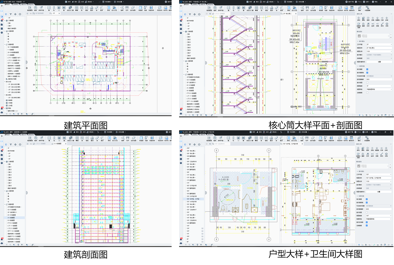 通过本土化、模块化等功能快速建立建筑专业BIM模型,在设计过程中利用平台的协同功能和可视化的优势,对节点、细部完成设计推敲,提高设计质量