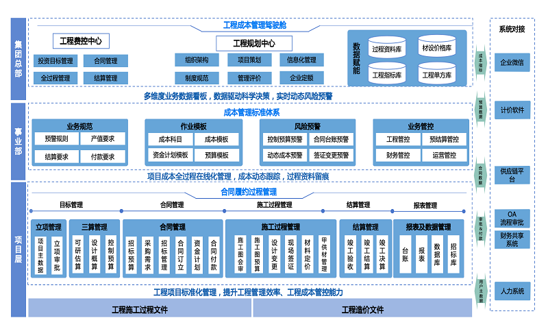 事业部(管控层):聚焦瀚蓝工程成本管理,建立高效合规的标准体系,规范业务流程并保障管理一致性。
