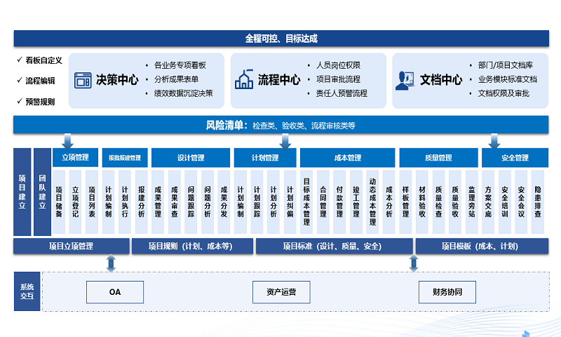 围绕编制、执行、跟踪,到分析四个环节,通过PDCA的闭环管控,实现及时反馈形象进度,及时提醒延期风险,实现计划管理、前期管理、设计管理、安全管理、质量管理、资料管理的全过程管控