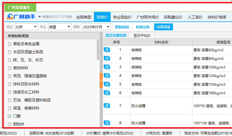 人材机汇总界面内置广材助手,可查各地区信息价、市场价等,各类材料的价格来源广泛,提高调价效率。