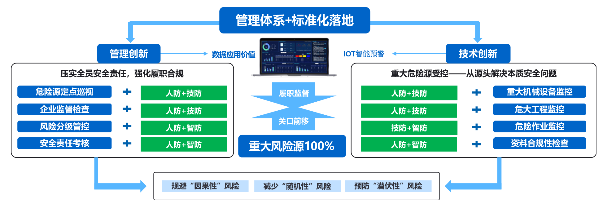 开云官方施工企业智慧安全解决方案积极响应安全生产法、立足管理和技术两大创新,从重大风险受控出发,将AI算法、智能物联技术与业务深度融合,保证重大风险隐患受控,企业履职合规,作业人员意识提升,帮助企业从源头防范和化解重大风险,从根本上解决人的安全、工程安全、履职安全落实的问题,让每一个工程项目安全可控。