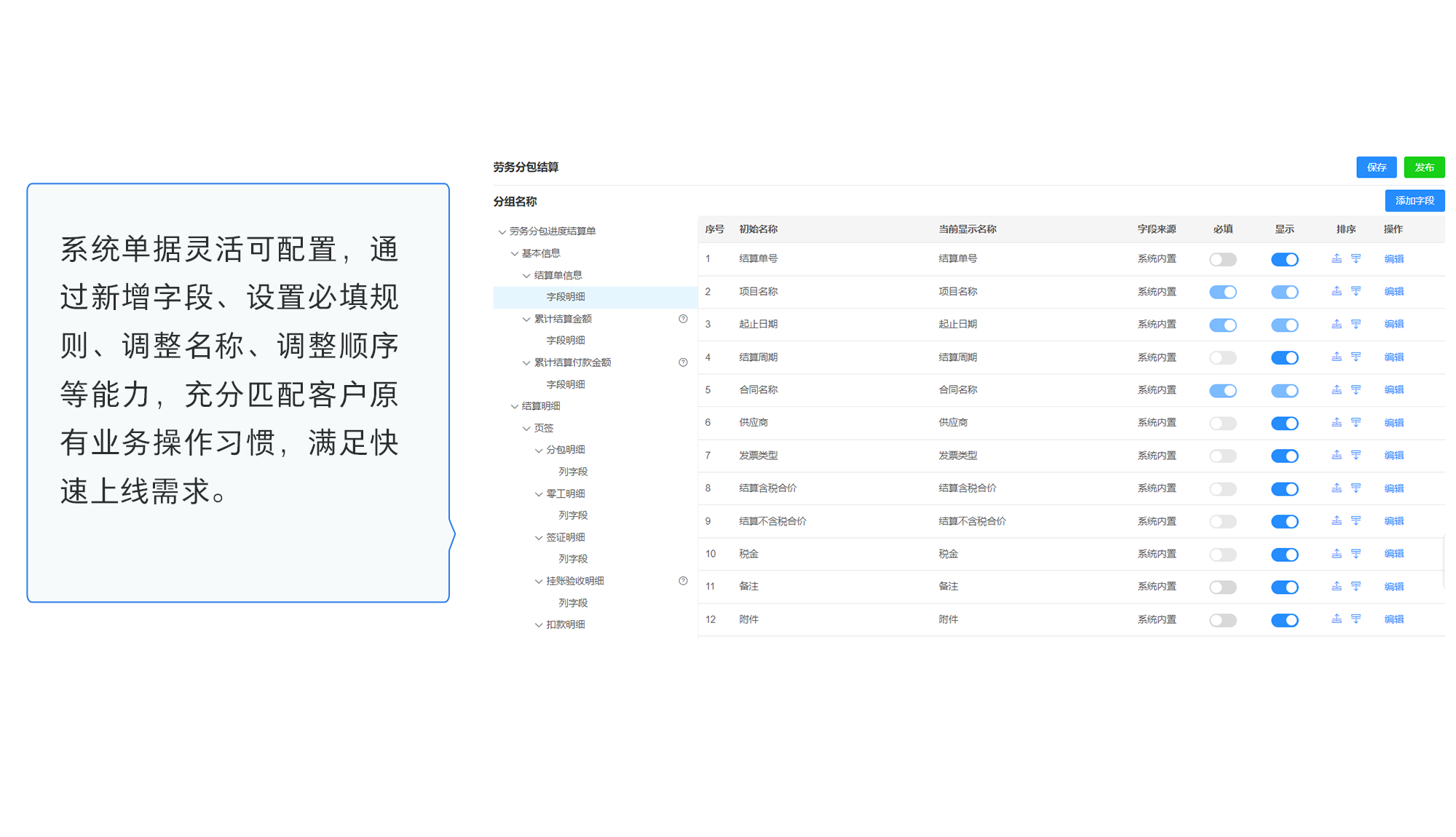 系统字段自主配,匹配业务上线快