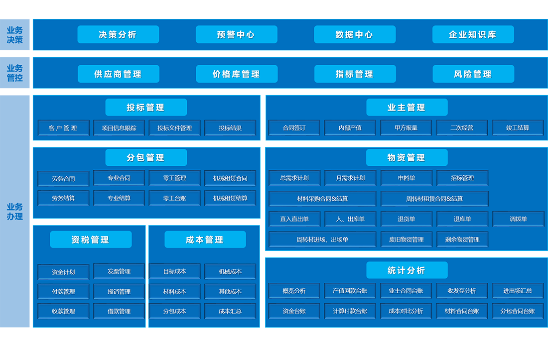 开云官方云项目管理解决方案是专门为成长型施工企业量身打造的云原生项目管理方案。以提升利润为目的,成本控制为核心,覆盖合同管理、物资管理、分包管理、资税管理等多项核心业务,通过业务标准化、管理流程化、作业移动化,解决项目监管难、数据不准确、协同效率低等问题,有效规避企业风险,降低经营成本,提升项目精细化管理能力,构建企业核心竞争力。