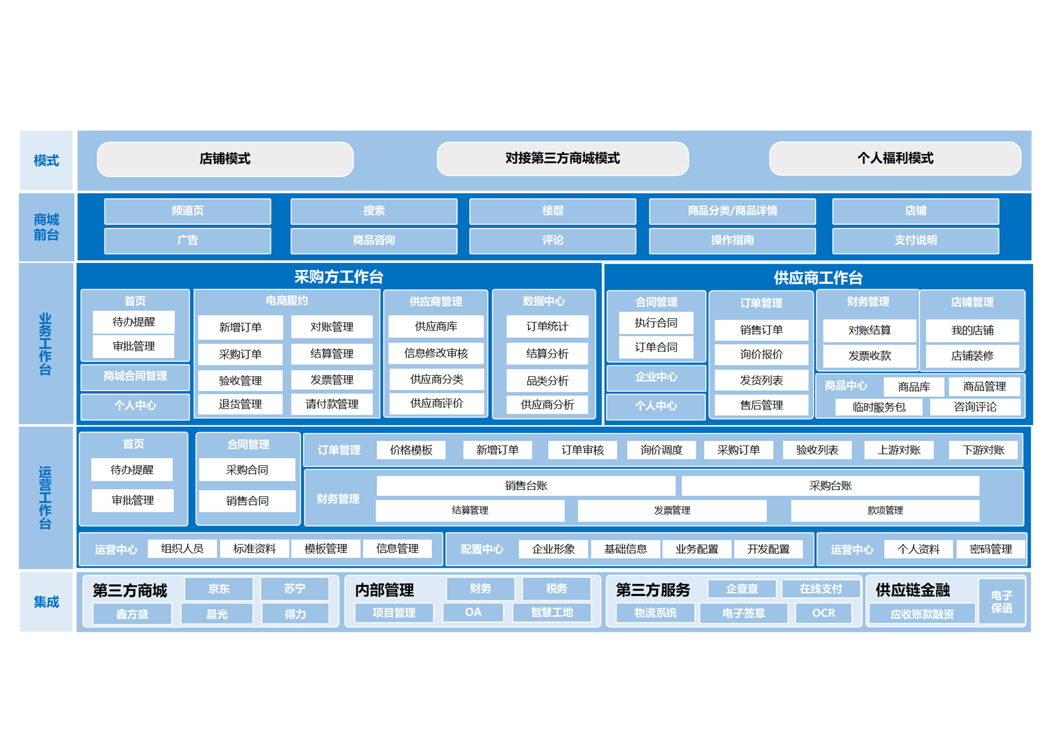 5. 支持自营模式与撮合模式的应用,助力企业建立电商运行服务体系,让采购业务成为企业新的效益增长极。
