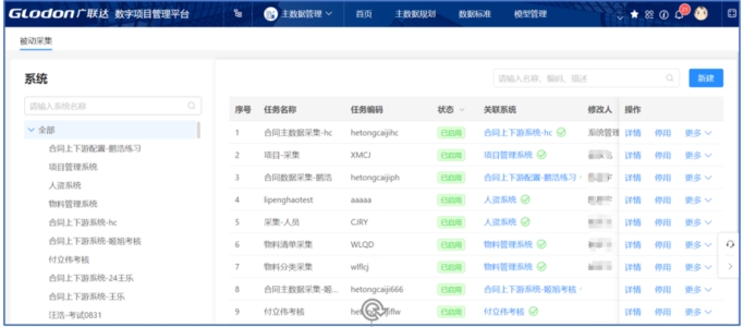 提供一站式可视化主数据采集功能,通过简单配置即可生成数据集成任务,帮助用户简单、高效地实现业务应用数据库的多源、异构、分散数据的统一归集