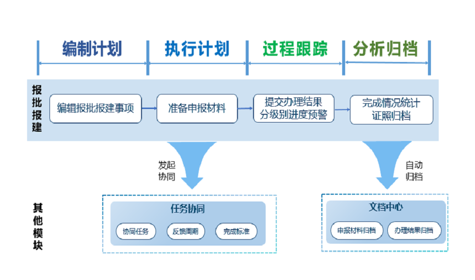 以风险管控为核心,项目初期编制计划、落实责任人,支持过程协同督办、预警提醒,办理结果自动归档。