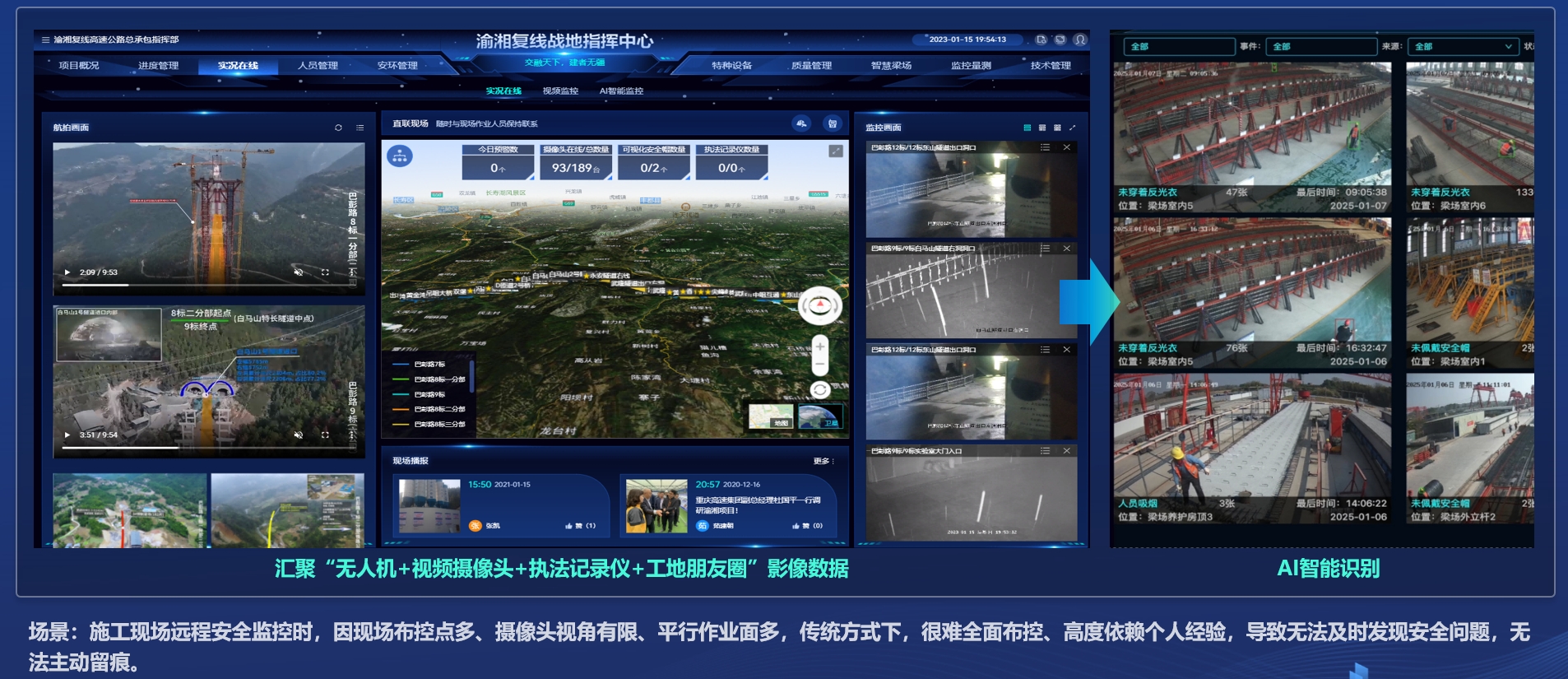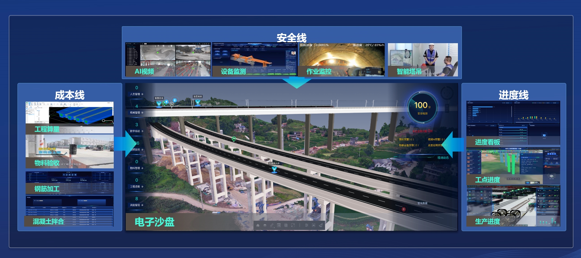 通过构建轻量化 BIM+GIS 工程信息模型,以模型为核心载体贯通项目进度、安全、成本等实体业务数据,有效打破部门数据壁垒,实现 “一数一源” 管理,显著提升跨部门协同效率;同时配套提供远程巡检服务,支持项目领导在 10 分钟内快速掌握现场真实情况,及时发现并解决问题,大幅提高现场管理效率;此外,依托三维可视化服务呈现动态、形象且可靠的现场施工反馈,助力各参与单位快速达成共识,显著提升项目汇报、沟通与协调效率,全方位赋能工程管理数字化升级。
