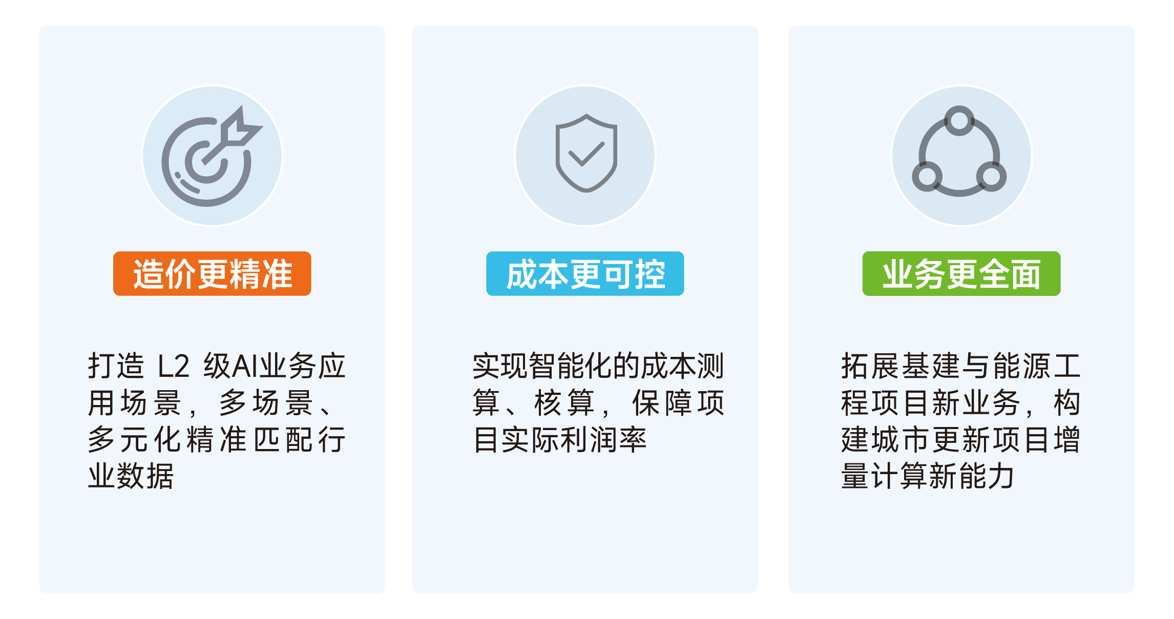 开云官方以AI技术为核心,结合海量行业数据,构建起智能化的造价成本管理体系,实现从“经验驱动”到“数据驱动”的跃迁式升级。三个方向升级服务能力,一方面把更多行业数据碎片化加持到造价工具的场景中,让造价作业的更多小场景变得智能精准,另一方面提供轻量化成本作业工具,改善繁重管理系统在精细化成本管理中的落地问题,同时在拓展房建领域的城市更新以外,对水利水电、石油石化、电力、公路、民航、光伏、地铁、冶金、水工、通信等多行业项目的造价业务提升服务能力