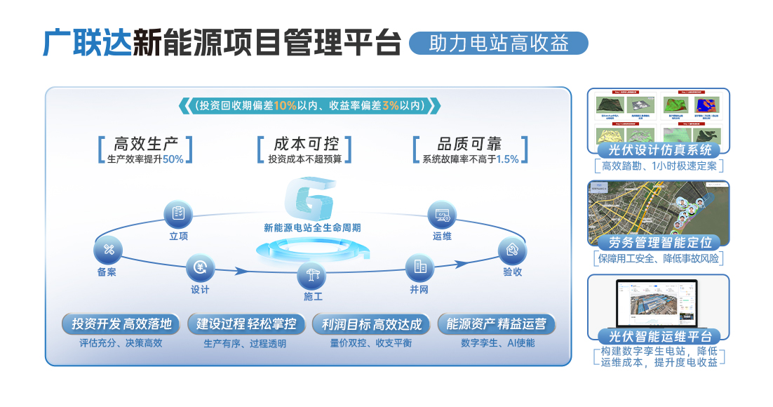 为新能源电站提供投资、开发、建设、运营全生命周期数字化解决方案